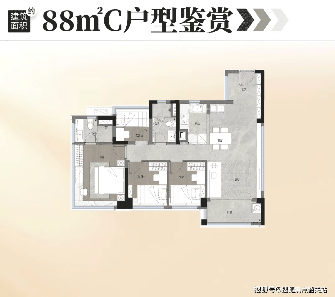 约88平户型可谓“全周期变形金刚”,